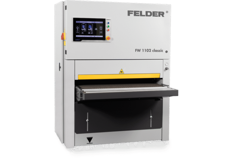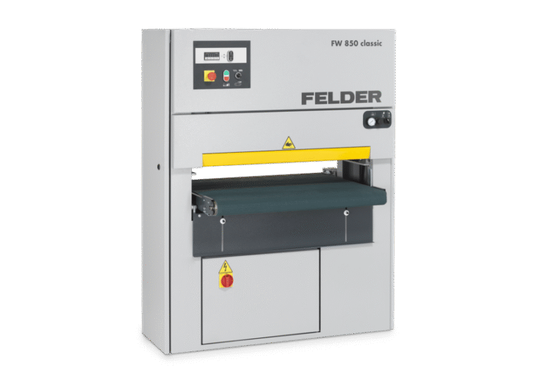 Ponceuse à larges bandes Felder FW 850 classicLargeur de ponçage : 850 mm Hauteur de ponçage : de 3 à 155 mm 2 vitesses d’avance : 4 et 8 m/min Agrégat combiné avec patin de ponçage électropneumatique