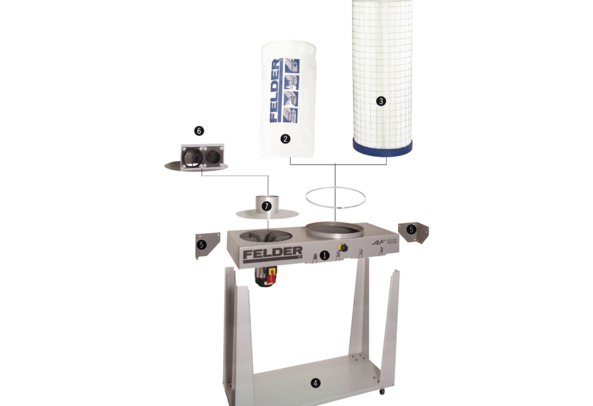 AF 22 Unité de base : avec moteur, roue de ventilateur en acier et système de changement rapide de sac à copeaux