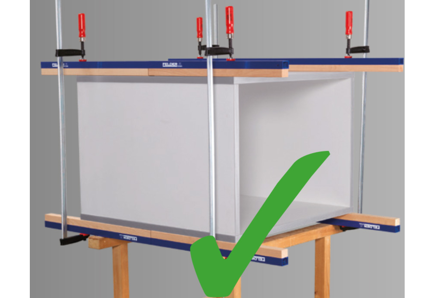Rapide, efficace et propre : avec les nouvelles rallonges de serrage, l’encollage de corps de meubles devient un jeu d’enfants ! Avec seulement deux serre-joints sur une longueur de 680 mm, la pression d’appui est répartie de manière optimale sur l’ensemble de la surface de contact. Si la longueur est doublée, le système de connexion des rallonges de serrage ne nécessite qu’un seul serre-joint supplémentaire. Grâce au support de serrage, l’installation est rapide et facile, même à une seule main. En réduisant la charge de travail et le nombre de serre-joints requis, vous économisez du temps .